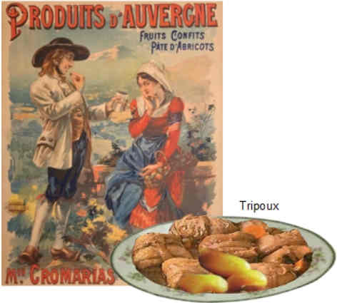 La potée auvergnate, la soupe aux choux, la truffade, les tripoux, l'aligot, sont au menu de la gastronomie d'Auvergne.